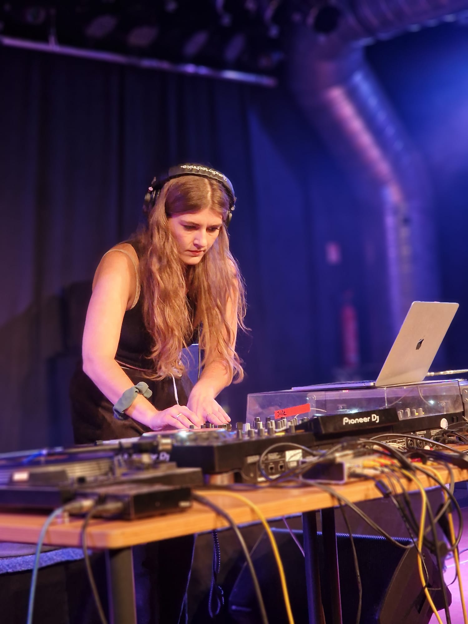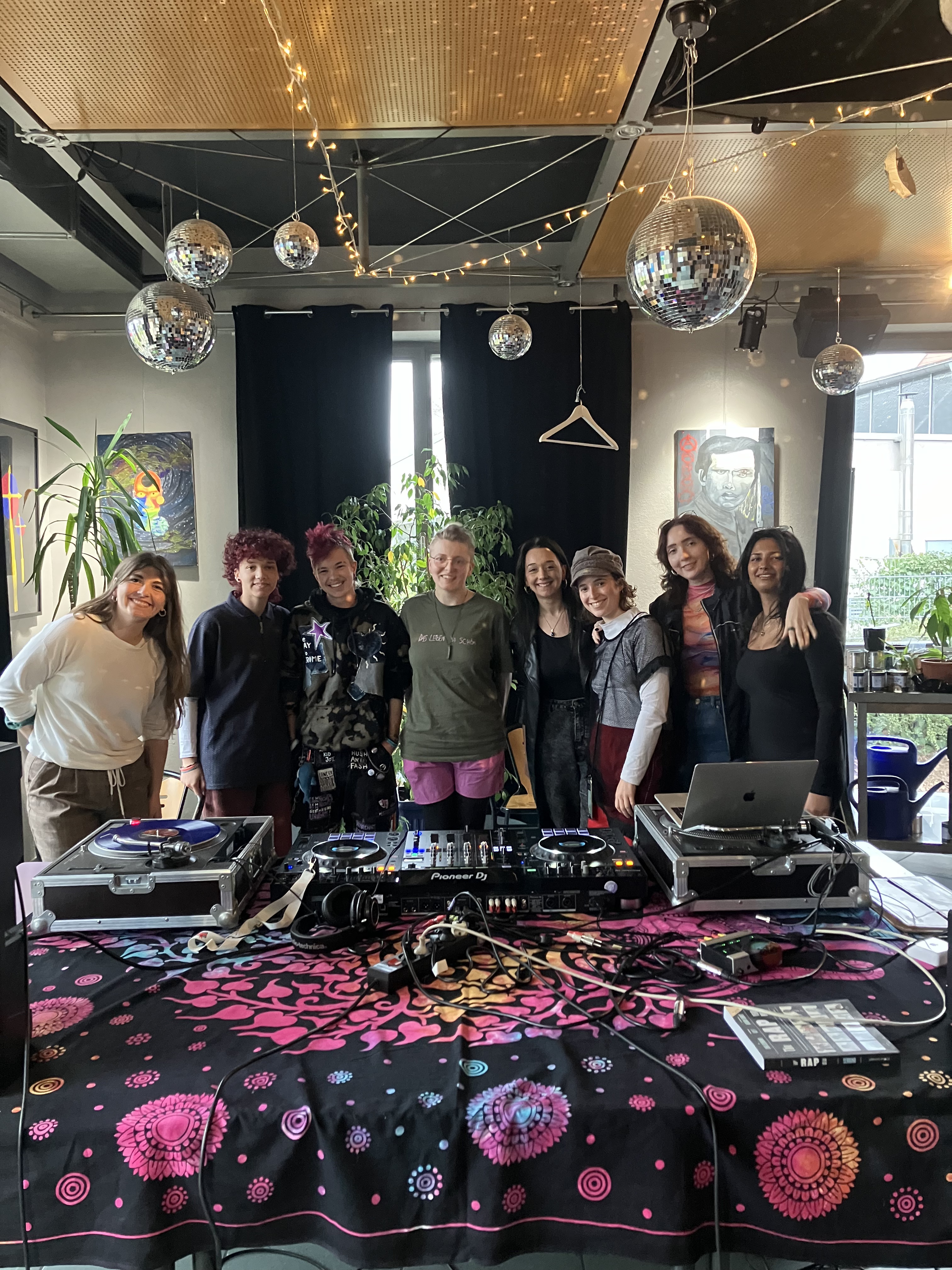 In meinen DJ-Workshops lernen junge FLINTA*-Personen spielerisch die Grundlagen des Auflegens kennen. Mir ist wichtig, einen niedrigschwelligen Raum zu schaffen, in dem sich alle frei ausprobieren können – ohne Druck und ohne Bewertung. Neben technischen Grundlagen wie Beatmatching, Trackauswahl und Übergängen steht vor allem das gemeinsame Ausprobieren und der empowernde Zugang zu Musik im Mittelpunkt. Ziel ist es, Berührungsängste abzubauen, Selbstvertrauen im Umgang mit Technik zu stärken und neue kreative Ausdrucksmöglichkeiten zu eröffnen. Unter dem Motto each one teach one geht es darum, gemeinsam zu lernen, erste Erfahrungen an den Decks zu sammeln und Begeisterung für Musik zu teilen. Die Workshops richten sich an Jugendzentren, Festivals, Schulen und Kulturprogramme.